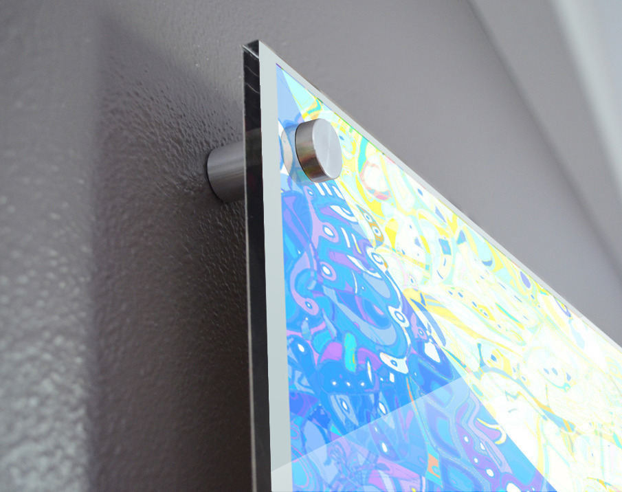 Fine Art made from a Premium polished, best-in-class, 99.9% optically pure acrylic and the latest Flatbed printing craftmanship.