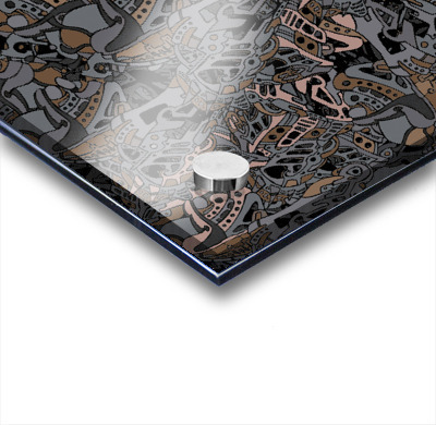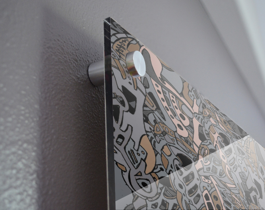 Impression sur acrylique avec entretoises ( cylindres métalliques )