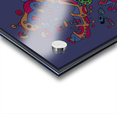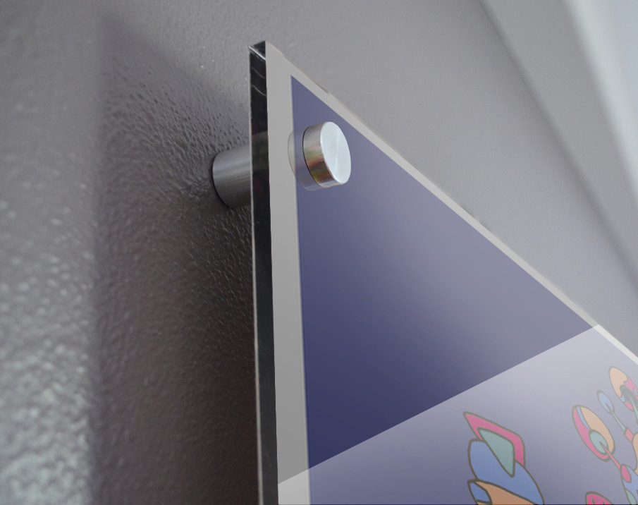 Impression sur acrylique avec entretoises ( cylindres métalliques )